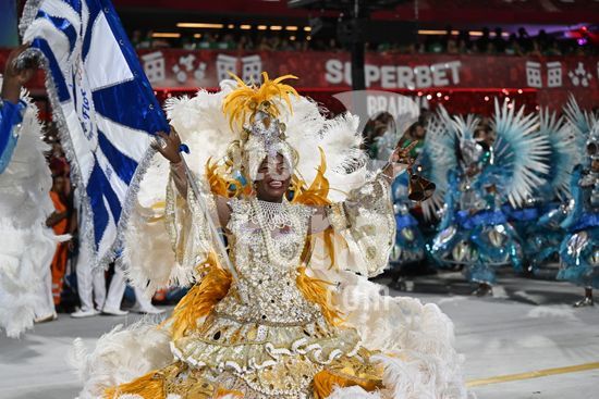 2887578 Portela desfila na noite de hoje, 15 de fevereiro de 2026, na Marquês de Sapucaí, pela Série Especial do Carnaval do Rio, com o enredo?O mistério do príncipe do Bará ? a oração do Negrinho e a ressurreição de sua coroa sob o céu aberto do Rio Grande?Carro alegórico entra com atraso na avenida.