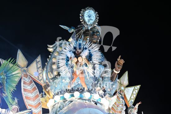 2887581 Portela desfila na noite de hoje, 15 de fevereiro de 2026, na Marquês de Sapucaí, pela Série Especial do Carnaval do Rio, com o enredo?O mistério do príncipe do Bará ? a oração do Negrinho e a ressurreição de sua coroa sob o céu aberto do Rio Grande?Carro alegórico entra com atraso na avenida.