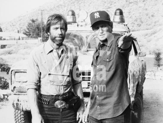 MBDLOWO_EC093 LONE WOLF MCQUADE, from left: Chuck Norris, director Steve Carver on set, 1983, © Orion/courtesy Everett Collection/Fotoarena/Fotoarena