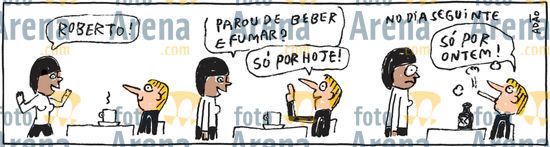 aisoc24105 ADÃO ITURRUSGARAI, SOCIEDADE, JORNAL O GLOBO, 25.06.2024.Diálogo- Roberto! Parou de beber e fumar?- Só por hoje!No dia seguinte...- Só por ontem!