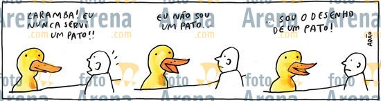 aivari24225 ADÃO ITURRUSGARAI, VARIEDADES, JORNAL O GLOBO, 17.05.2024.Diálogo- Caramba! Eu nunca servi um pato!!- Eu não sou um pato... Sou o desenho de um pato!