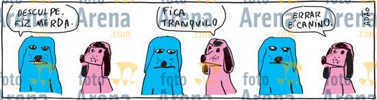 aivari24230 ADÃO ITURRUSGARAI, VARIEDADES, JORNAL O GLOBO, 23.05.2024.Diálogo- Desculpe. Fiz merda.- Fica tranquilo. Errar é canino.