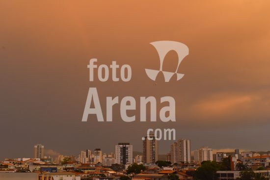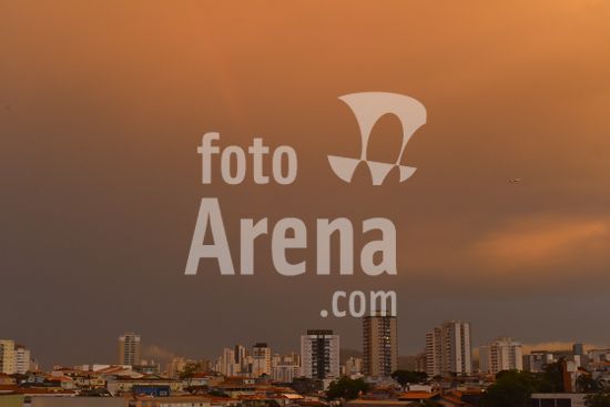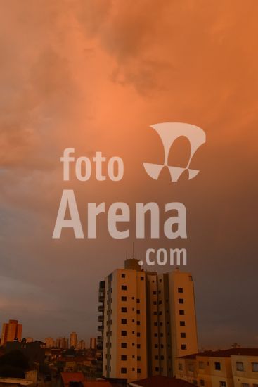 2920507 Amanhecer em São Paulo com chuva, nublado, nuvens carregadas e céu alaranjado, nesta terça feira (7). Na foto a zona norte da capital.