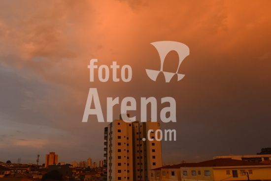 2920508 Amanhecer em São Paulo com chuva, nublado, nuvens carregadas e céu alaranjado, nesta terça feira (7). Na foto a zona norte da capital.
