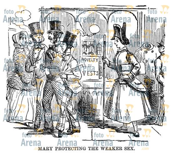 PCL108953 "The Ladies of the Creation; Or, how I was cured of being a strong-minded woman. Mary Protecting the Weaker Sex." *** Local Caption *** John Leech Cartoons from Punch magazine