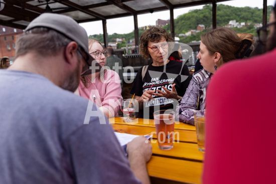ny250624111011 Claire Wagner, a volunteer with the Ohio League of Women Voters, talks with customers at Rhinegeist Brewery in Cincinnati about signing a Citizens Not Politicians petition to establish a citizens redistricting commission and ban gerrymandering in Ohio, May 8, 2024. Under the national radar, states are fielding ballot measures that claim to reduce partisanship and amplify votersÕ voices, but can they cure what ails American politics? (Maddie McGarvey/The New York Times/Fotoarena)