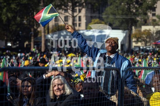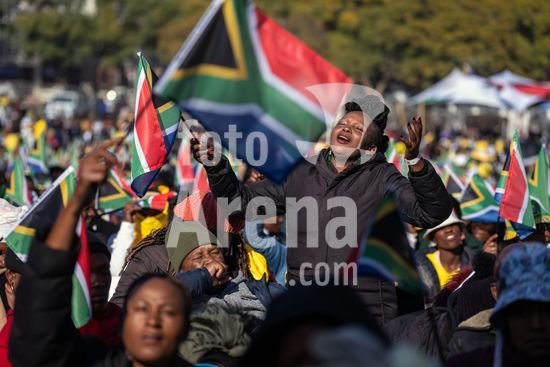 ny190624105912 People wave the flag of South Africa in celebration during the inauguration of President Cyril Ramaphosa to a second term in Pretoria on Wednesday, June 19, 2024. With a humility stemming from his partyÕs electoral disappointment, Ramaphosa was sworn in for a second term on Wednesday, conceding bluntly to the governmentÕs failure to cure a nation that remains deeply divided and economically fraught in the three decades since the end of apartheid. (Joao Silva/The New York Times/Fotoarena)
