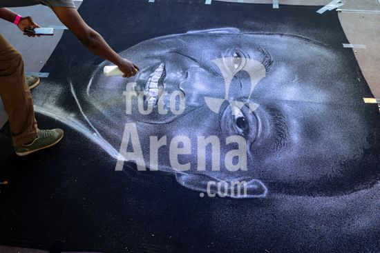 ny190624110311 An artist works on a portrait of President Cyril Ramaphosa of South Africa during his inauguration to a second term in Pretoria on Wednesday, June 19, 2024. With a humility stemming from his partyÕs electoral disappointment, Ramaphosa was sworn in for a second term on Wednesday, conceding bluntly to the governmentÕs failure to cure a nation that remains deeply divided and economically fraught in the three decades since the end of apartheid. (Joao Silva/The New York Times/Fotoarena)
