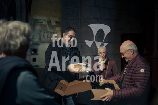 ny120125183210 Patrice Boulard holds a package of Florus Solatium ham as he sells ham to the visitors of Cathedrale Saint-Pierre de Saint-Flour in Saint-Flour, France on Nov. 8, 2024. A dispute over a project to cure hams in a bell tower underscored the difficulties that churches in France face trying to pay for restorations. (Dmitry Kostyukov/The New York Times/Fotoarena)
