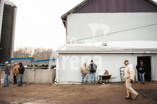 ny110420131504 FILE - People attend David and Jaime OwenÕs cattle auction in Pulaski, Wis., Dec. 20, 2019. A brutal type of scorched-earth political warfare is flaring in AmericaÕs dairyland, showing how partisanship pushed to its most strategic outer limits can ensnare farmers who need help. (Lauren Justice/The New York Times/Fotoarena)