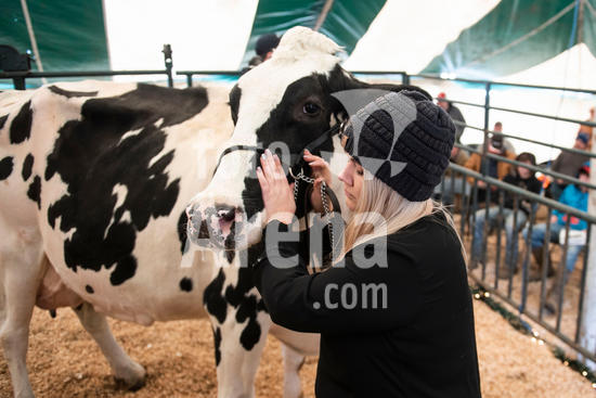 ny110420131104 FILE - Amber Owen pets a cow during her familyÕs cattle auction in Pulaski, Wis., Dec. 20, 2019. A brutal type of scorched-earth political warfare is flaring in AmericaÕs dairyland, showing how partisanship pushed to its most strategic outer limits can ensnare farmers who need help. (Lauren Justice/The New York Times/Fotoarena)