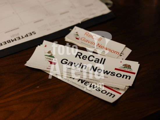 ny130921151205 Recall stickers made by Craig Gordon, a dairy farmer, at his farm in Ontario, Calif., Sept. 11, 2021. He has been urging voters to recall Gov. Gavin Newsom. Gordon is unhappy with dairy taxes, coronavirus restrictions and water curtailments. (Rozette Rago/The New York Times/Fotoarena)