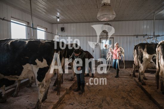 ny050122124406 Elida Dickey, left, and Emma Mehuren milk cows at Faithful Venture Farm in Searsmont, Maine, Dec. 15, 2021. Horizon Organic, which had been buying the farm?s milk for 16 years, is ending its contracts in the Northeast. (Tristan Spinski/The New York Times/Fotoarena)