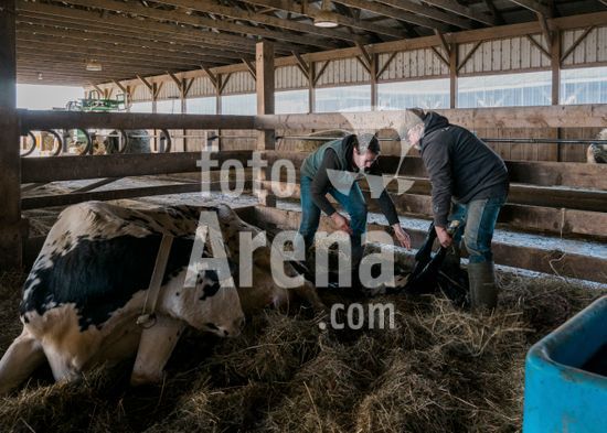 ny050122125005 Glendon Mehuren II and Elida Dickey, his daughter, look after a newborn calf at Faithful Venture Farm, an organic dairy, in Searsmont, Maine, Dec. 15, 2021. Organic milk has been a lifeline for small farms in Maine and other New England states. Now those farms are facing trouble as milk processors look to huge dairies in Western states. (Tristan Spinski/The New York Times/Fotoarena)