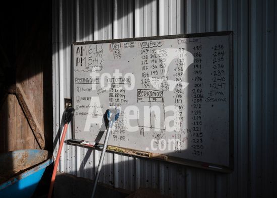 ny050122123705 A dry erase board with farming information at Faithful Venture Farm, an organic dairy, in Searsmont, Maine, Dec. 15, 2021. Organic milk has been a lifeline for small farms in Maine and other New England states. Now those farms are facing trouble as milk processors look to huge dairies in Western states. (Tristan Spinski/The New York Times/Fotoarena)