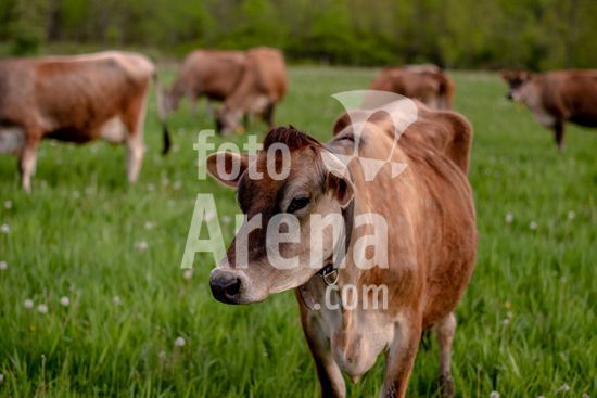 ny140622171106 Some of Animal Farm Creamery?s herd of 10 Jersey cows at pasture, in Shoreham, Vt., May 18, 2022. The herd, which for 22 years has been making the most sought-after small-batch cultured butter in the U.S., was recently sold by retiring owner Diane St. Clair to a nearby young family with 100 organic acres and a desire to continue the small dairy?s methods. (Hilary Swift/The New York Times/Fotoarena)