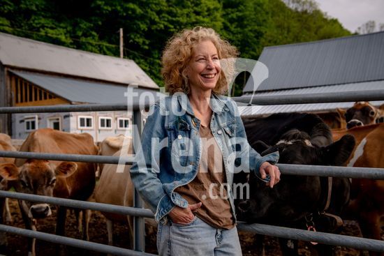 ny140622170806 Diane St. Clair with the Animal Farm Creamery herd she sold to Ben and Hilary Haigh, at the couple?s Rolling Bale Farm in Shoreham, Vt., May 18, 2022. St. Clair, who wanted to retire from dairy work, recently sold her herd of Jerseys, which for 22 years has been making the most sought-after small-batch cultured butter in the U.S., to a nearby young family with 100 organic acres and a desire to continue the small dairy?s methods. (Hilary Swift/The New York Times/Fotoarena)