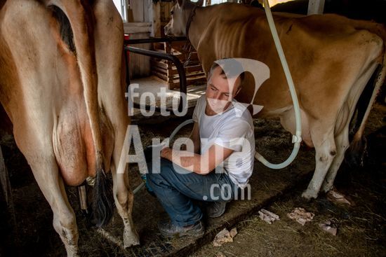 ny291220010405 **EMBARGO: No electronic distribution, Web posting or street sales before 2:31 a.m. ET TUESDAY, DEC. 29, 2020. No exceptions for any reasons. EMBARGO set by source.** Nate Chittenden, a dairy farmer at Dutch Hollow Farm in Schodack Landing, N.Y., with his cows on Oct. 7, 2020. Facing a growing anti-dairy movement, many farmers are altering their practices. (Lauren Lancaster/The New York Times/Fotoarena)