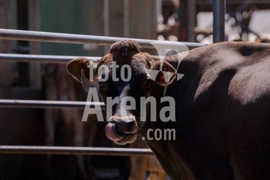 ny041025162413 **EMBARGO: No electronic distribution, Web posting or street sales before SUNDAY 5:01 A.M. ET OCT. 5, 2025. No exceptions for any reasons. EMBARGO set by source.** A dairy cow wears a collar with movement sensors and Wi-Fi that is made by the health care company Merck, at T&C Louters Dairy in Merced, Calif., July 10, 2025. All 700 cows at Tony LoutersÕ dairy farm wear the high-tech devices, which provide data he can use to keep them happier and more productive. (Adam Perez/The New York Times/Fotoarena)