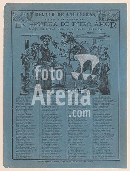 In proof of true love, a watercarrier skeleton arguing with a woman (Posada); two skeleton angels in upper corners (Manilla). Artist: José Guadalupe Posada (Mexican, 1851-1913); Manuel Manilla (Mexican, Mexico City ca. 1830-1895 Mexico City). Dimensions: Sheet: 15 3/4 × 11 13/16 in. (40 × 30 cm). Publisher: Antonio Vanegas Arroyo (1850-1917, Mexican). Date: ca. 1900-1910. Museum: Metropolitan Museum of Art, New York, USA.