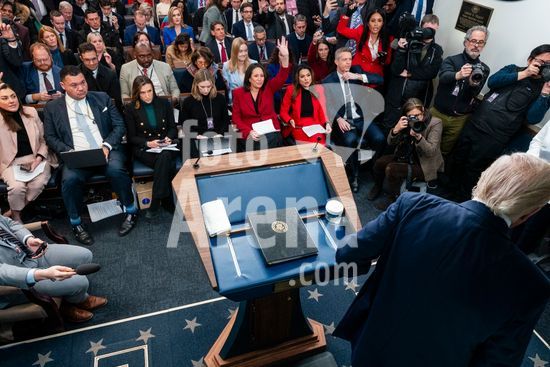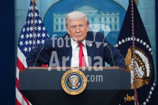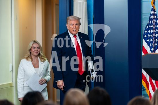 ny200126205511 President Donald Trump arrives with White House Press Secretary Karoline Leavitt to speak to reporters during a briefing at the White House in Washington, on Tuesday, Jan. 20, 2026. (Eric Lee/The New York Times/Fotoarena)