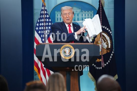 ny200126220810 President Donald Trump holds a paper labeled ÒaccomplishmentsÓ while speaking to reporters during a briefing at the White House in Washington, on Tuesday, Jan. 20, 2026. President Trump tossed aside a 31-page list of his accomplishments during a briefing at the White House on Tuesday but still had plenty to say about the first year of his second term. (Eric Lee/The New York Times/Fotoarena)