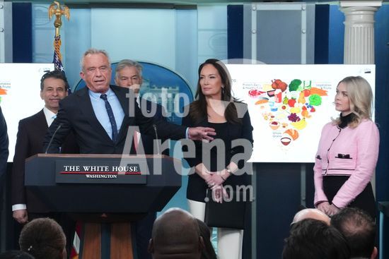 ny070126134412 Secretary of Health and Human Service Robert F. Kennedy Jr. speaks about new dietary guidelines during a briefing for reporters at the White House in Washington, on Wednesday, Jan. 7, 2026. In a striking reversal of past nutrition guidance, the Trump administration released new dietary guidelines that flip the food pyramid on its head, putting steak, cheese and whole milk near the top. (Eric Lee/The New York Times/Fotoarena)
