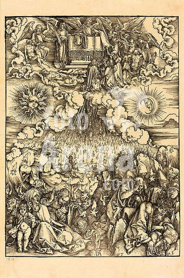 alb3733100 The Opening of the Fifth and Sixth Seal. Dated: 1498. Dimensions: image: 39.2 x 28.6 cm (15 7/16 x 11 1/4 in.) sheet: 45.6 x 31.2 cm (17 15/16 x 12 5/16 in.). Medium: woodcut on laid paper. Museum: National Gallery of Art, Washington DC. Author: ALBRECHT DURER.