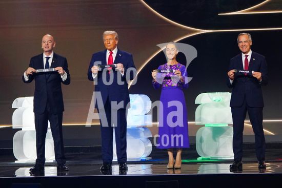 ny051225151511 From left: Gianni Infantino, the president of FIFA; President Donald Trump; President Claudia Sheinbaum of Mexico and Prime Minister Mark Carney of Canada participate in the draw for the 2026 FIFA World Cup, at the Kennedy Center in Washington on Friday, Dec. 5, 2025. (Tierney L. Cross/The New York Times/Fotoarena)
