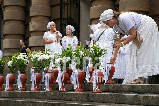 2880418 Inspirada em práticas culturais tradicionais da Bahia, o Theatro Municipal de São Paulo realizou neste sábado (7) a IV Edição da Lavagem da Escadaria. Com início às 11h, a programação contou com apresentações culturais e bênçãos conduzidas por sacerdotes de matriz africana no Salão Nobre e posteriormente a Lavagem da Escadaria ao som de cânticos e rítmos sagrados.