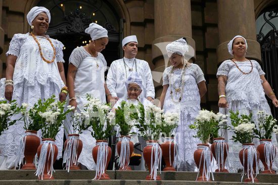 2880414 Inspirada em práticas culturais tradicionais da Bahia, o Theatro Municipal de São Paulo realizou neste sábado (7) a IV Edição da Lavagem da Escadaria. Com início às 11h, a programação contou com apresentações culturais e bênçãos conduzidas por sacerdotes de matriz africana no Salão Nobre e posteriormente a Lavagem da Escadaria ao som de cânticos e rítmos sagrados.