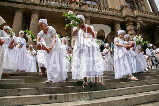2880398 Inspirada em práticas culturais tradicionais da Bahia, o Theatro Municipal de São Paulo realizou neste sábado (7) a IV Edição da Lavagem da Escadaria. Com início às 11h, a programação contou com apresentações culturais e bênçãos conduzidas por sacerdotes de matriz africana no Salão Nobre e posteriormente a Lavagem da Escadaria ao som de cânticos e rítmos sagrados.