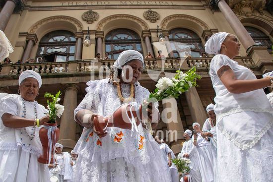 2880397 Inspirada em práticas culturais tradicionais da Bahia, o Theatro Municipal de São Paulo realizou neste sábado (7) a IV Edição da Lavagem da Escadaria. Com início às 11h, a programação contou com apresentações culturais e bênçãos conduzidas por sacerdotes de matriz africana no Salão Nobre e posteriormente a Lavagem da Escadaria ao som de cânticos e rítmos sagrados.