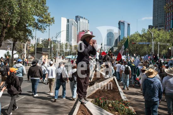 ny151125203811 Protesters march along Avenida Paseo de la Reforma in Mexico City, Nov. 15, 2025. Protesters gathered across Mexico Saturday to vent their frustration at how President Claudia Sheinbaum has handled corruption and violent crime, with demonstrators ranging from pensioners to young people linking themselves with a global Gen Z movement from states far away. (Fred Ramos/The New York Times/Fotoarena)