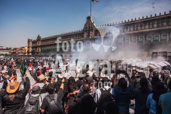 ny151125203812 Protesters confront police during clashes in the Zócalo in Mexico City, Nov. 15, 2025. Protesters gathered across Mexico Saturday to vent their frustration at how President Claudia Sheinbaum has handled corruption and violent crime, with demonstrators ranging from pensioners to young people linking themselves with a global Gen Z movement from states far away. (Fred Ramos/The New York Times/Fotoarena)