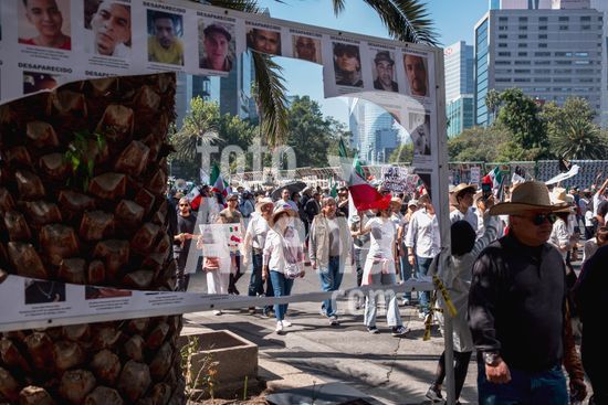 ny151125214111 Protesters walk along Avenida Paseo de la Reforma, passing by photographs of missing people, in Mexico City, Mexico, Nov. 15, 2025. Protesters gathered across Mexico Saturday to vent their frustration at how President Claudia Sheinbaum has handled corruption and violent crime, with demonstrators ranging from pensioners to young people linking themselves with a global Gen Z movement from states far away. (Fred Ramos/The New York Times/Fotoarena)