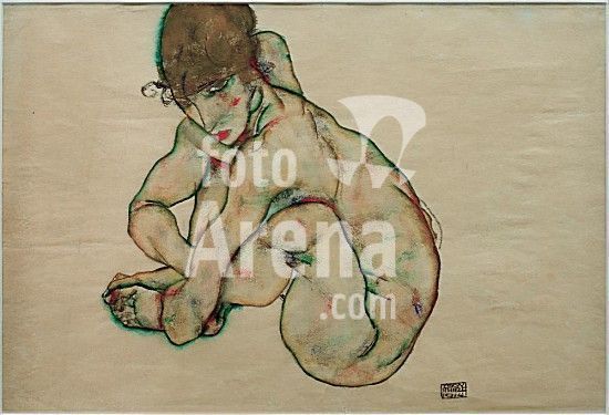 akg182877 Schiele, Egon, 1890-1918, Austrian painter. "Kauernder Mädchenakt" (Crouching young nude), 1914. Pencil and gouache on paper, 31.4 × 48.3cm. Vienna, Leopold Collection. Leopold Museum, Vienna, Austria. . Museum: Vienna, Leopold Museum-Privatstiftung.