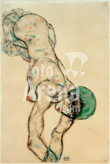 akg2349204 Schiele, Egon, 1890-1918, Austrian painter. "Frauenakt mit grüner Haube" (Female nude with green cap), 1914. Pencil, watercolour and gouache on Japan paper, 32 × 48.5 cm. Inv. no. 31118. Vienna, Graphische Sammlung Albertina. Museum: Wien, Graphische Sammlung Albertina.