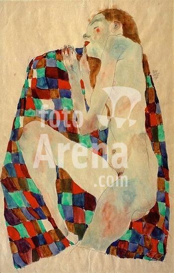 akg443102 Schiele, Egon. 1890-1918. "Female Nude on a Checkered Blanket", 1911. Watercolour and pencil on paper, 48 × 31.5cm. Inv. Nr. II/1302. Graz, Neue Galerie am Joanneum. Museum: Graz, Neue Galerie am Joanneum.