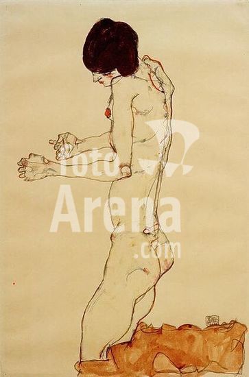 alb4156997 Egon Schiele (Tulln, 1890-Vienna, 1918). Nude Girl with Arms Outstretched (1911). Watercolor, gouache and pencil on paper. 48 x 31.5 cm. Museum: Museo Nacional Thyssen-Bornemisza, Madrid.