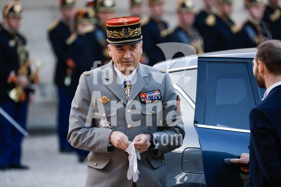 20250401_zea_s64_002 April 1, 2025, Paris, France: Thierry Burkhard Chief of the Armed Forces Staff arrive for a state diner arrive for a state diner. French President Emmanuel Macron And Brigitte Macron Host King Frederik X and Queen Mary of Denmark for a state diner at the Elysee Palace. Paris, FRANCE-31/03/2025. 442412 2025-04-01 Paris France (Credit Image: © Romuald Meigneux/Starface/Zuma Press/Fotoarena)