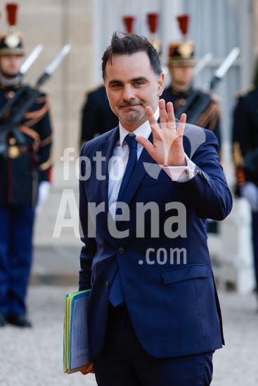 20250401_zea_s64_018 April 1, 2025, Paris, France: Laurent Saint-Martin Minister for Foreign Trade and the French Abroad arrive for a state diner arrive for a state diner. French President Emmanuel Macron And Brigitte Macron Host King Frederik X and Queen Mary of Denmark for a state diner at the Elysee Palace. Paris, FRANCE-31/03/2025. 442412 2025-04-01 Paris France (Credit Image: © Romuald Meigneux/Starface/Zuma Press/Fotoarena)