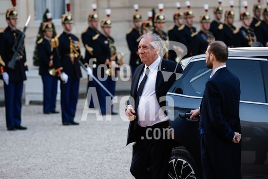 20250401_zea_s64_046 April 1, 2025, Paris, France: French Prime Minister François Bayrou arrives for a state diner. French President Emmanuel Macron And Brigitte Macron Host King Frederik X and Queen Mary of Denmark for a state diner at the Elysee Palace. Paris, FRANCE-31/03/2025. 442412 2025-04-01 Paris France (Credit Image: © Romuald Meigneux/Starface/Zuma Press/Fotoarena)