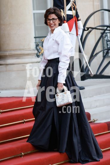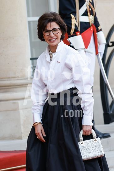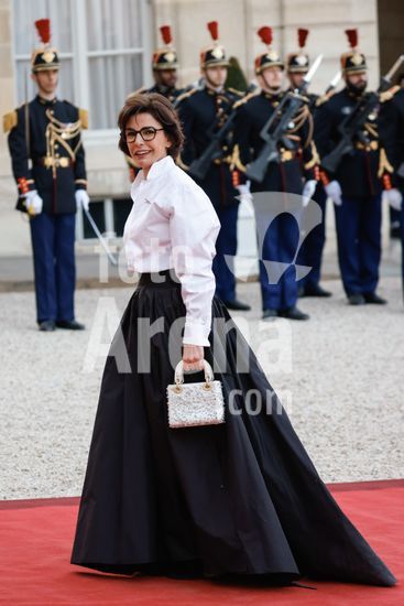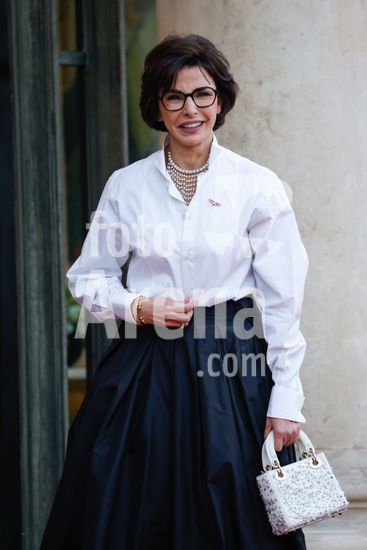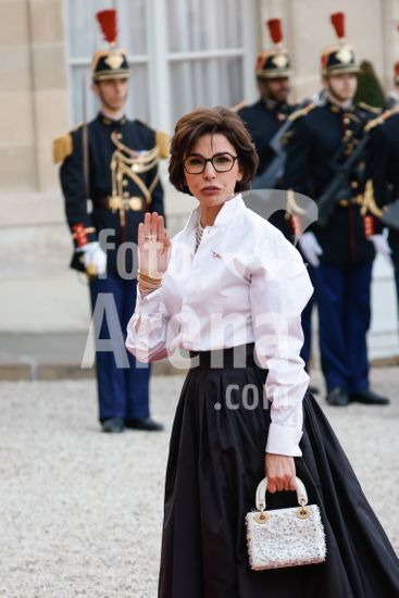 20250401_zea_s64_053 April 1, 2025, Paris, France: French Minister of Culture Rachida Dati arrives for a state diner . French President Emmanuel Macron And Brigitte Macron Host King Frederik X and Queen Mary of Denmark for a state diner at the Elysee Palace. Paris, FRANCE-31/03/2025. 442412 2025-04-01 Paris France (Credit Image: © Romuald Meigneux/Starface/Zuma Press/Fotoarena)