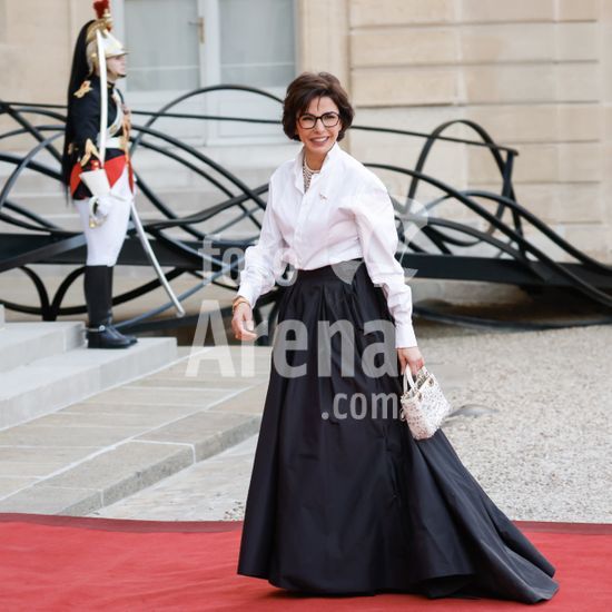 20250401_zea_s64_051 April 1, 2025, Paris, France: French Minister of Culture Rachida Dati arrives for a state diner . French President Emmanuel Macron And Brigitte Macron Host King Frederik X and Queen Mary of Denmark for a state diner at the Elysee Palace. Paris, FRANCE-31/03/2025. 442412 2025-04-01 Paris France (Credit Image: © Romuald Meigneux/Starface/Zuma Press/Fotoarena)