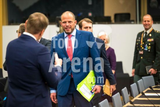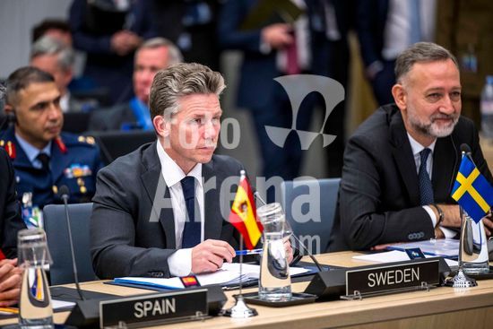 20250410_faf_w80_026 April 10, 2025: Pål Jonson, Minister of Defence of Sweden attends the Coalition of the Willing meeting co-hosted by France and the United Kingdom at NATO headquarters in Brussels, Belgium, on 10.04.2025. The session brings together allied defence ministers to strengthen cooperation on military readiness and coordinated defence strategies..Photo by Wiktor Dabkowski (Credit Image: © Wiktor Dabkowski/ZUMA Press Wire)