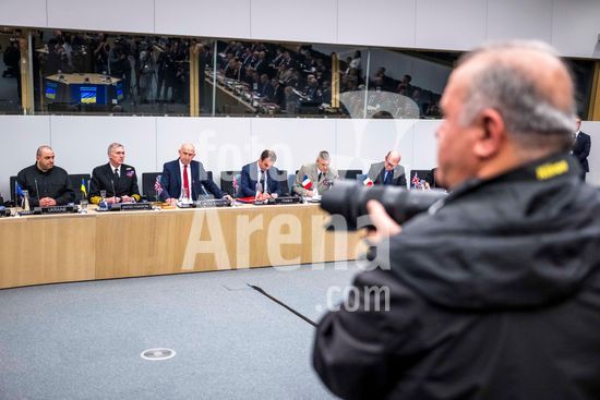 20250410_faf_w80_025 April 10, 2025: John Healey, Secretary of State for Defence of the United Kingdom (L) attends the Coalition of the Willing meeting co-hosted by France and the United Kingdom at NATO headquarters in Brussels, Belgium, on 10.04.2025. The session brings together allied defence ministers to strengthen cooperation on military readiness and coordinated defence strategies..Photo by Wiktor Dabkowski (Credit Image: © Wiktor Dabkowski/ZUMA Press Wire)