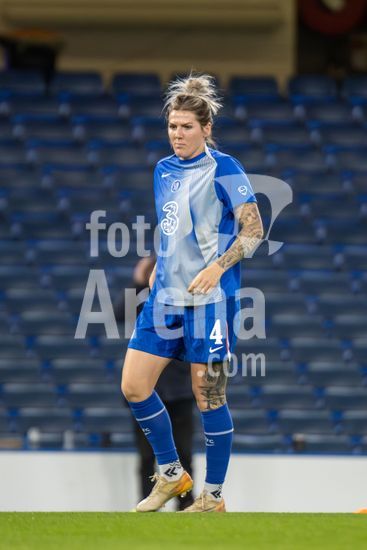 2857300 Millie Bright (4 Chelsea) aquece antes da partida entre Chelsea e Roma pela fase de grupos da Liga dos Campeoes Feminina da UEFA, em Stamford Bridge, Londres, Inglaterra, na quarta-feira, 10 de dezembro de 2025. (Claire Jeffrey / SPP)