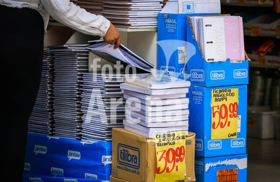 2872380 A volta às aulas deve ficar mais cara em 2026. Dados recentes apontam aumento de 2,35% nos preços dos materiais escolares no último ano, com destaque para os livros didáticos, impactados pela alta no custo da celulose, principal matéria-prima do papel. Levantamento do Procon-SP indica ainda grande variação entre os preços praticados no comércio, com diferença de quase três vezes para o mesmo item, o que reforça a importância da pesquisa antes da compra. Na foto, movimentação de pessoas em loja de material escolar em Osasco na Grande São Paulo, nesta sexta-feira (23).
