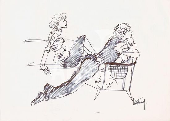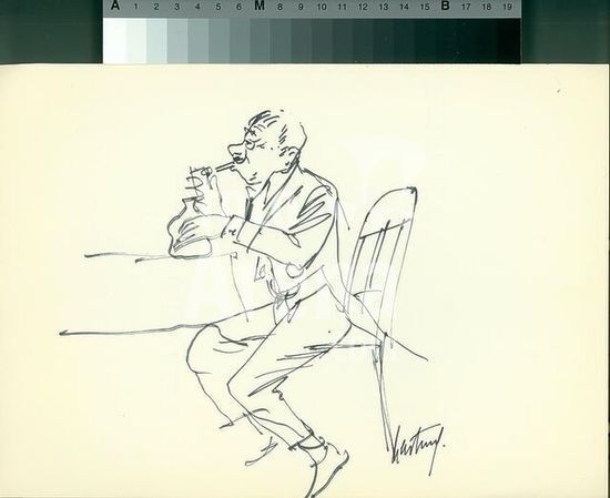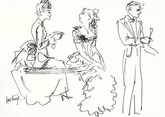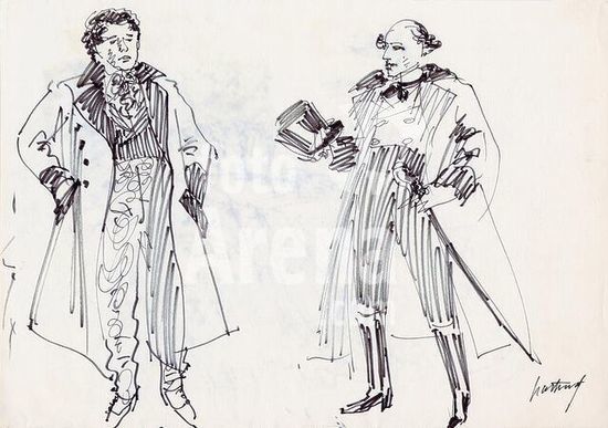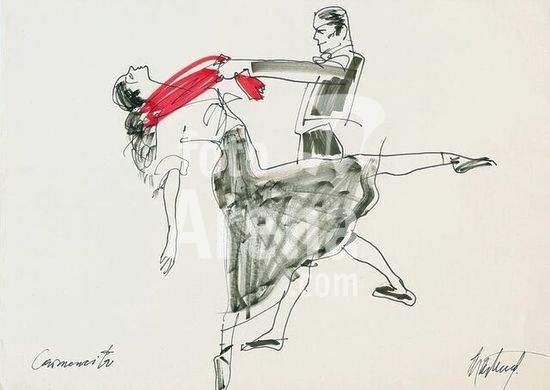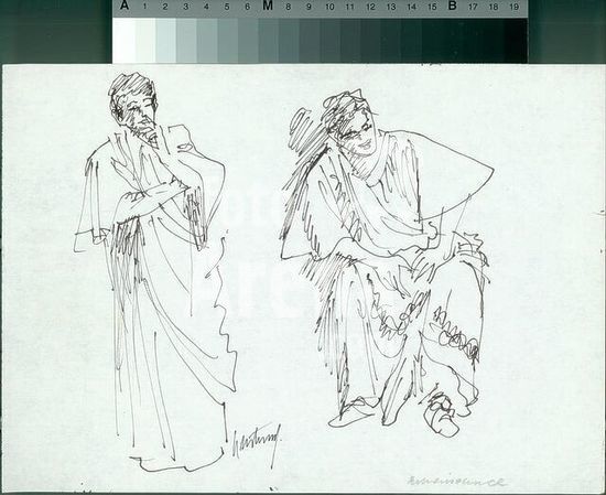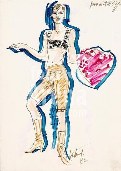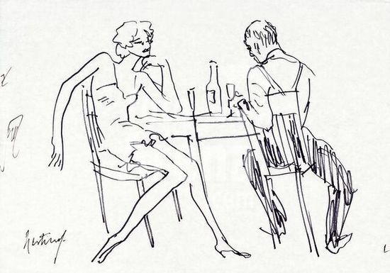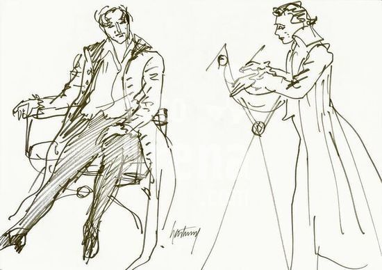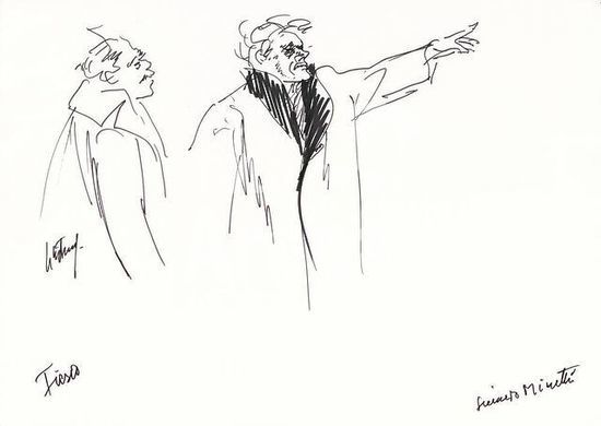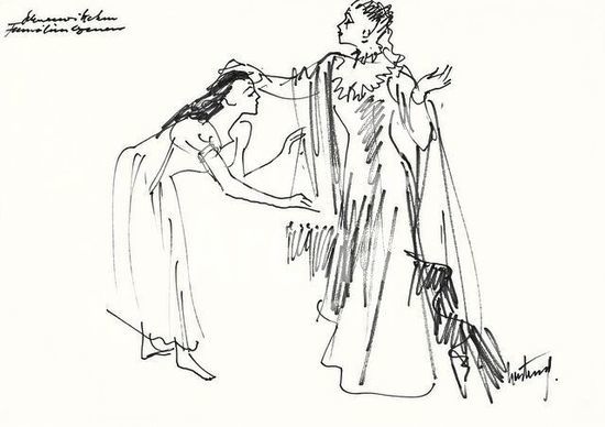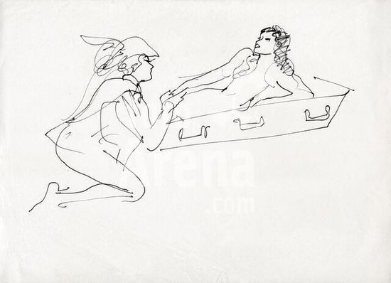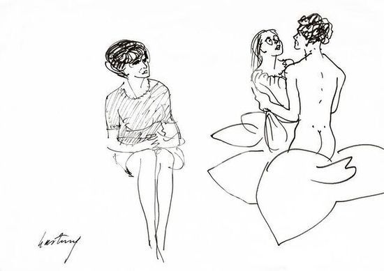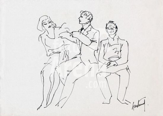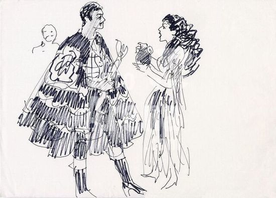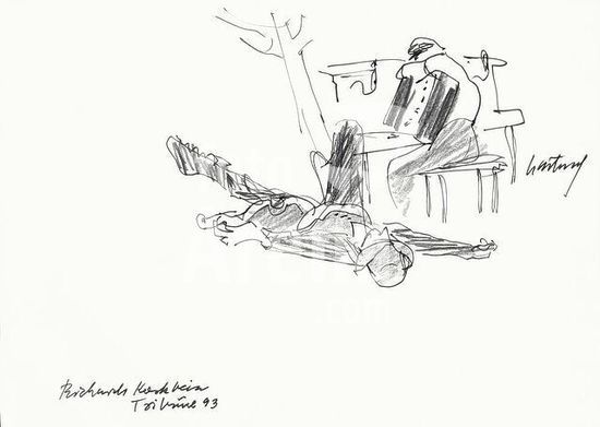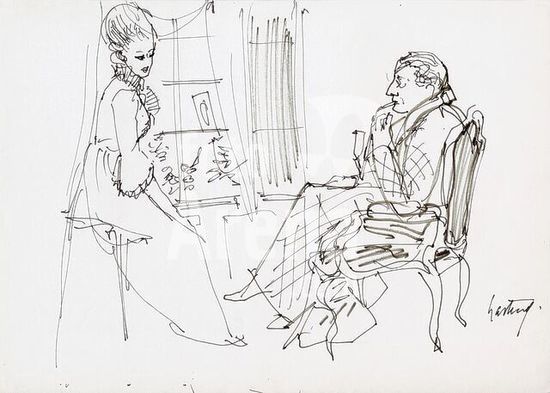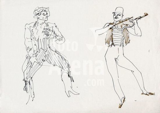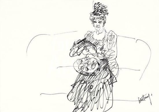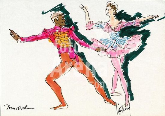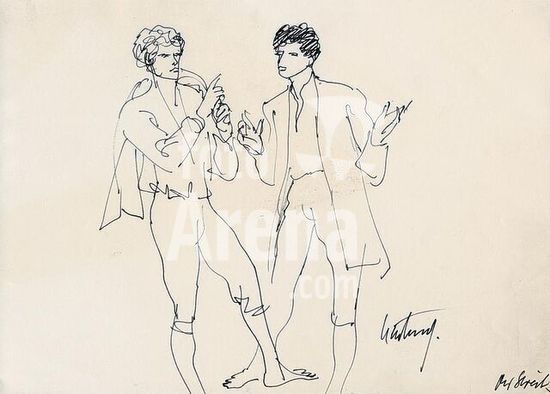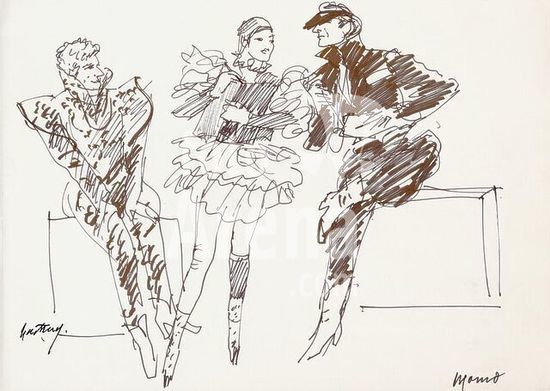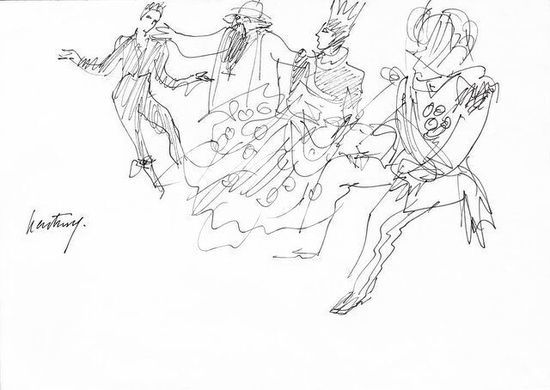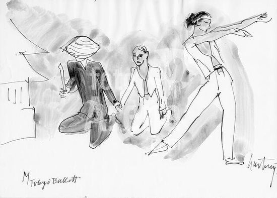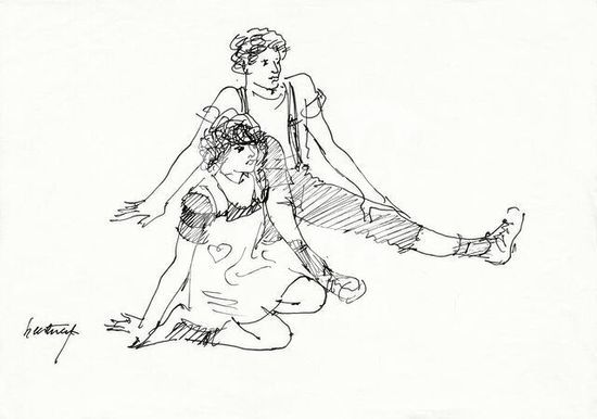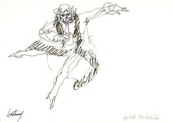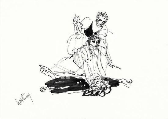 Roland Petit; French dancer, choreographer and ballet director; Villemoble (Seine-Saint-Denis) 13.1.1924 - Geneva 10.7.2011. Works: Proust ou Les Intermittences du coeur (Ballet, 1974). Performance Deutsche Oper Berlin, 1984 (Director / Choreographer: Roland Petit): Scene. Drawing, 1984, by Gerd Hartung (1913-2003). Felt tip pen on paper 21 × 29.7cm. Private collection. Museum: PRIVATE COLLECTION. Copyright: For editorial use only. This artwork is not in the public domain. akg-images represents the artistic copyright of this artist, please contact us from more information and to clear the necessary permissions. Gerd Hartung's artistic copyright cleared via akg-images.